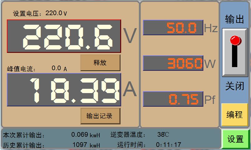 ? 超大7英寸觸摸屏顯示各項參數:電壓、頻率、功率、功因、電流、峰值電流、溫度、電量、時間、相位角、阻抗值及電壓和電流的實時曲線